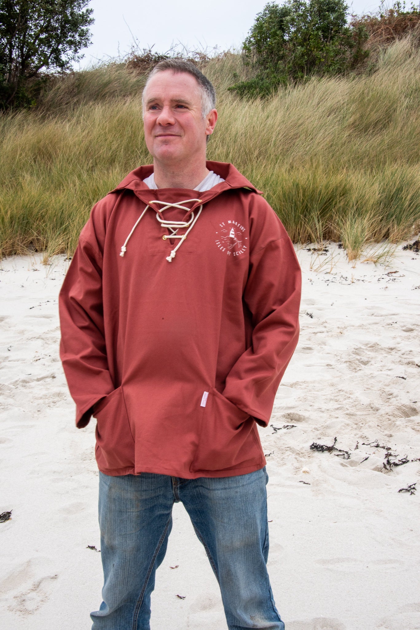 These traditional Cornish fishermen's smocks are handmade in West Cornwall from 100% cotton drill. Famously known for fading and wearing with age, they are hardwearing and practical for many leisure and work pursuits. They are machine washable.