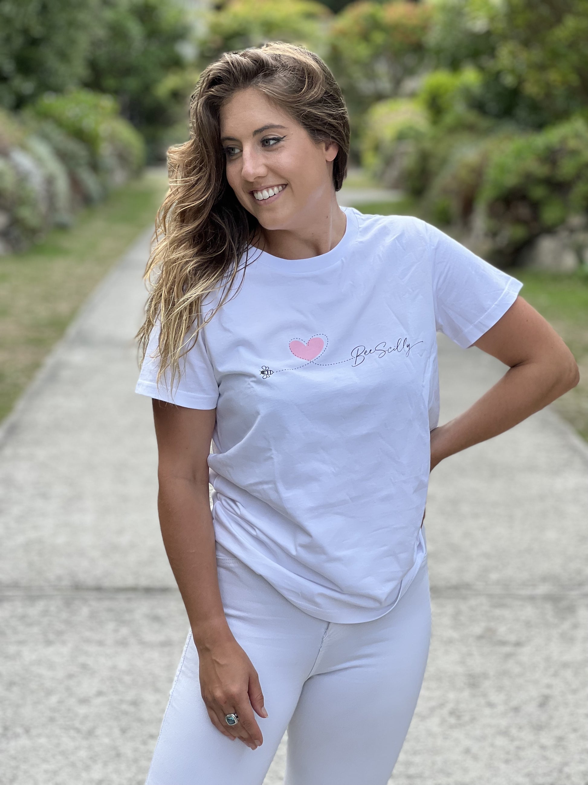 Bee Scilly wherever you are in this gorgeously soft tee. Designed in Scilly and locally printed by hand using water-based inks, our Bee Scilly design forms part of our "Scilly by Nature" range.