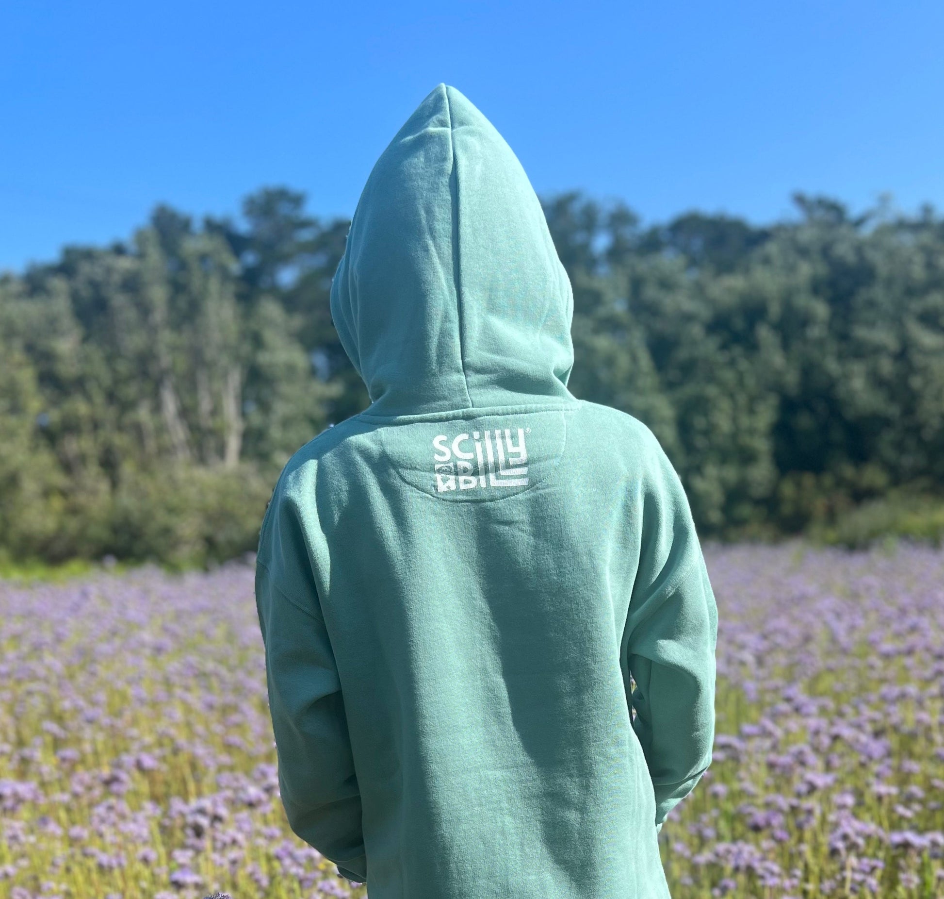 Designed in Scilly and printed locally with water based ink, these EarthPositive hoodies are made from 100% combed organic cotton, with 90% reduced CO2, achieved by a combination of low-impact organic farming, efficiency in manufacturing and transportation, and the use of renewable energy.