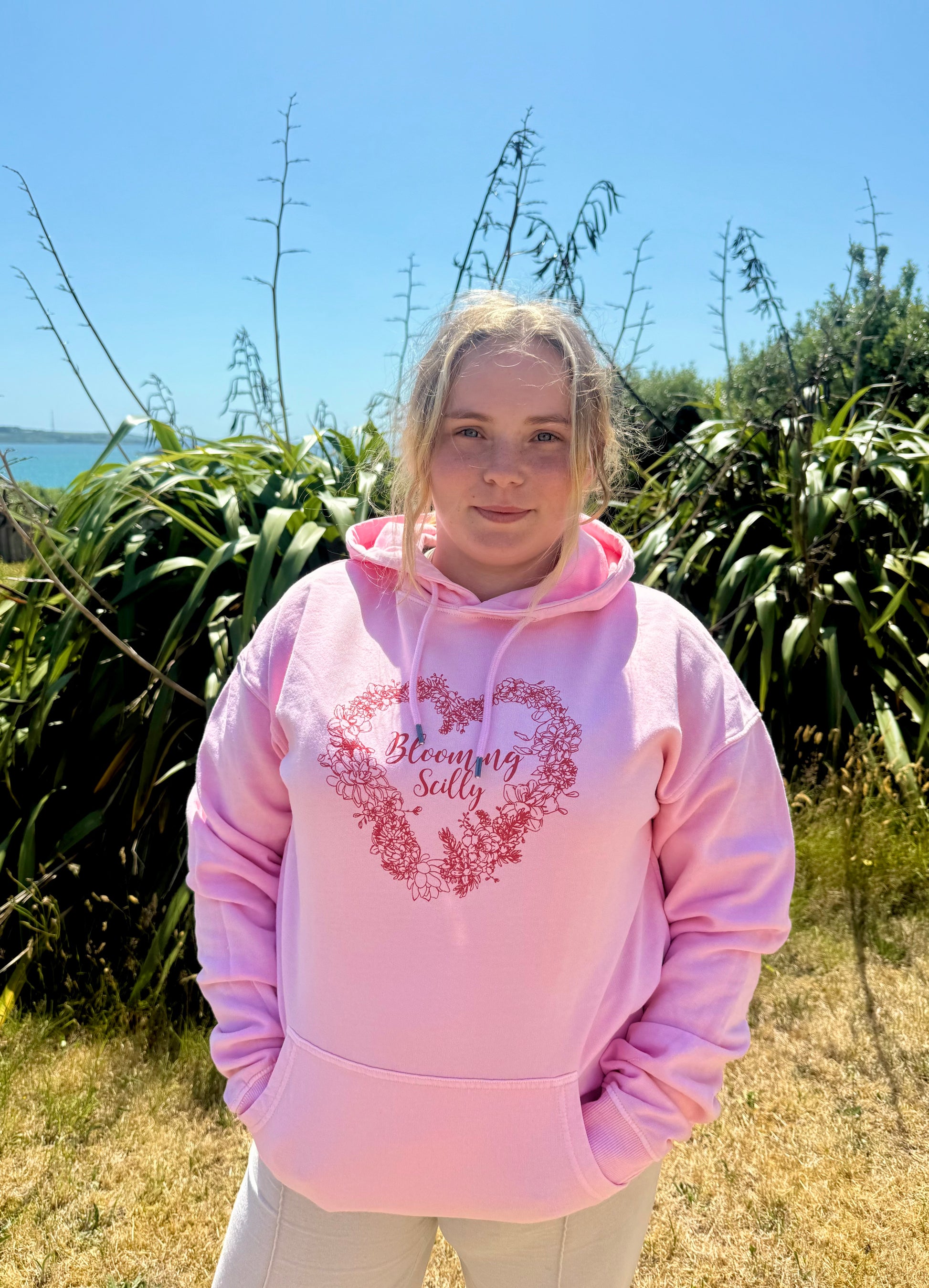 Blooming Scilly Organic Hoodie - Stone Washed Pink