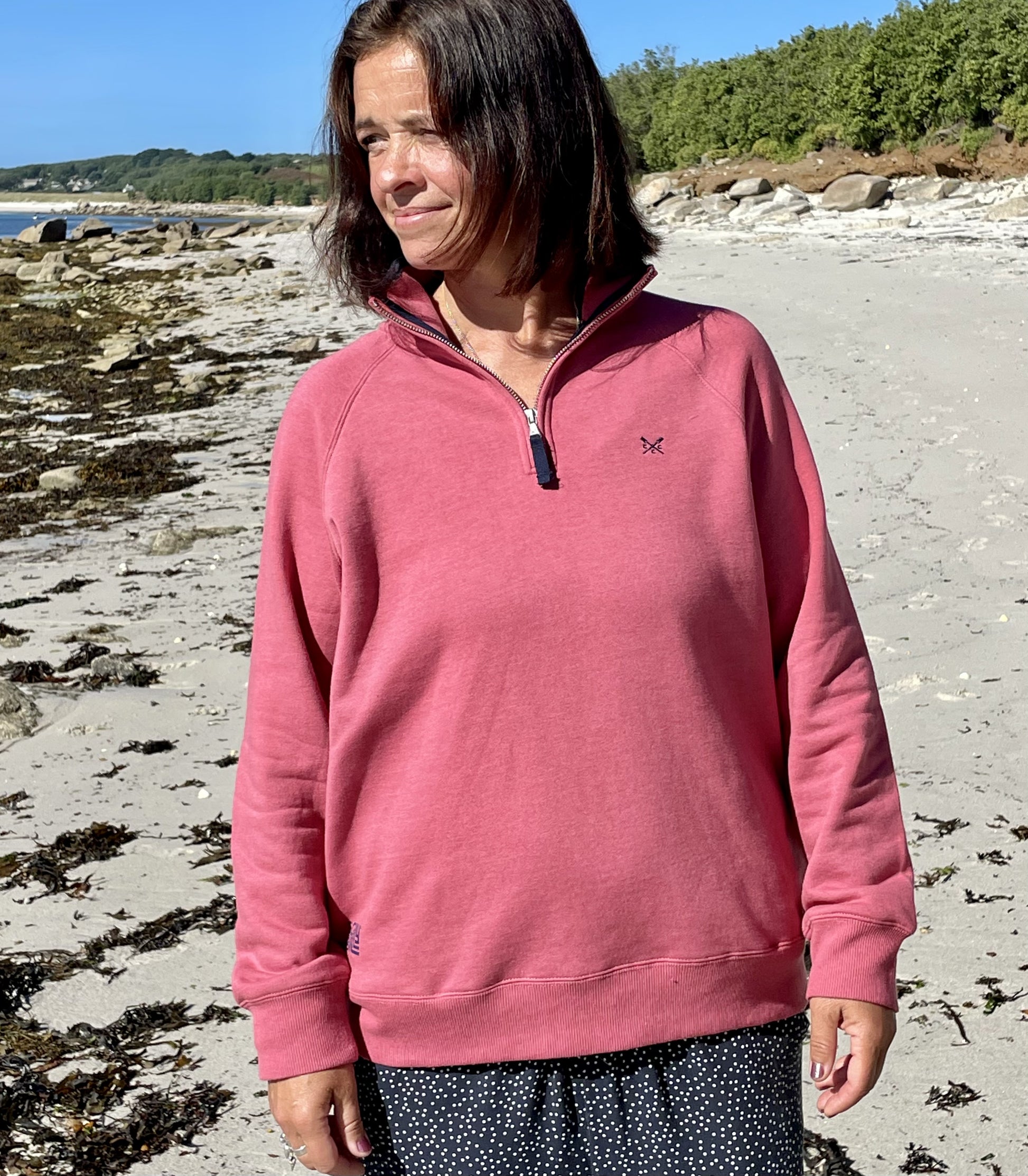 A half zip sweatshirt in rose pink marl. What makes Crew sweats extra special? All the details. From herringbone touches to the cosy funnel collar to the fabric that’s been washed for softness. Plus side pockets for elegant practicality - always handy to have a pocket to hand!
