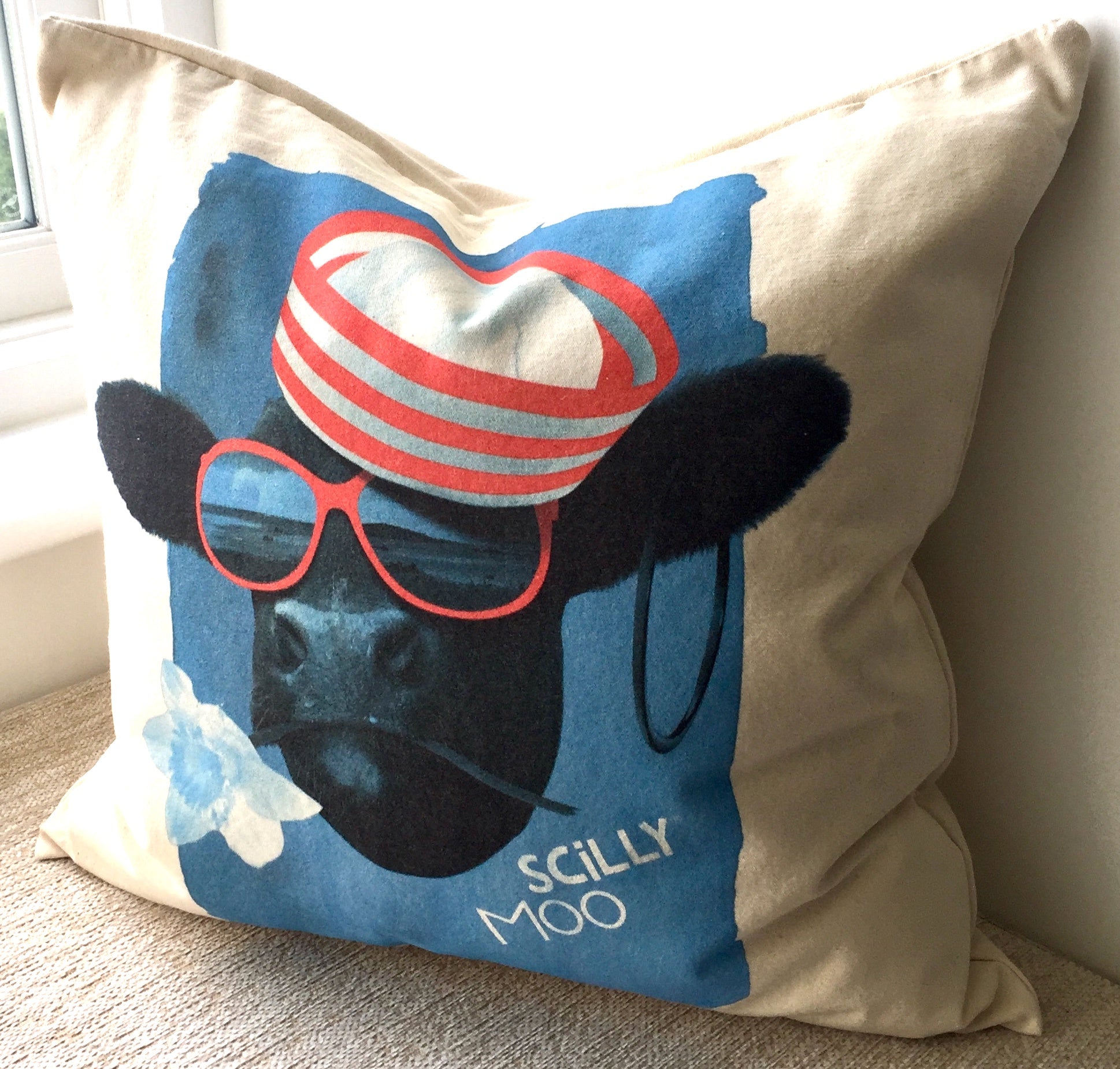 Brighten up any kids bedroom, your lounge, den or conservatory with this Scilly Moo cushion cover.