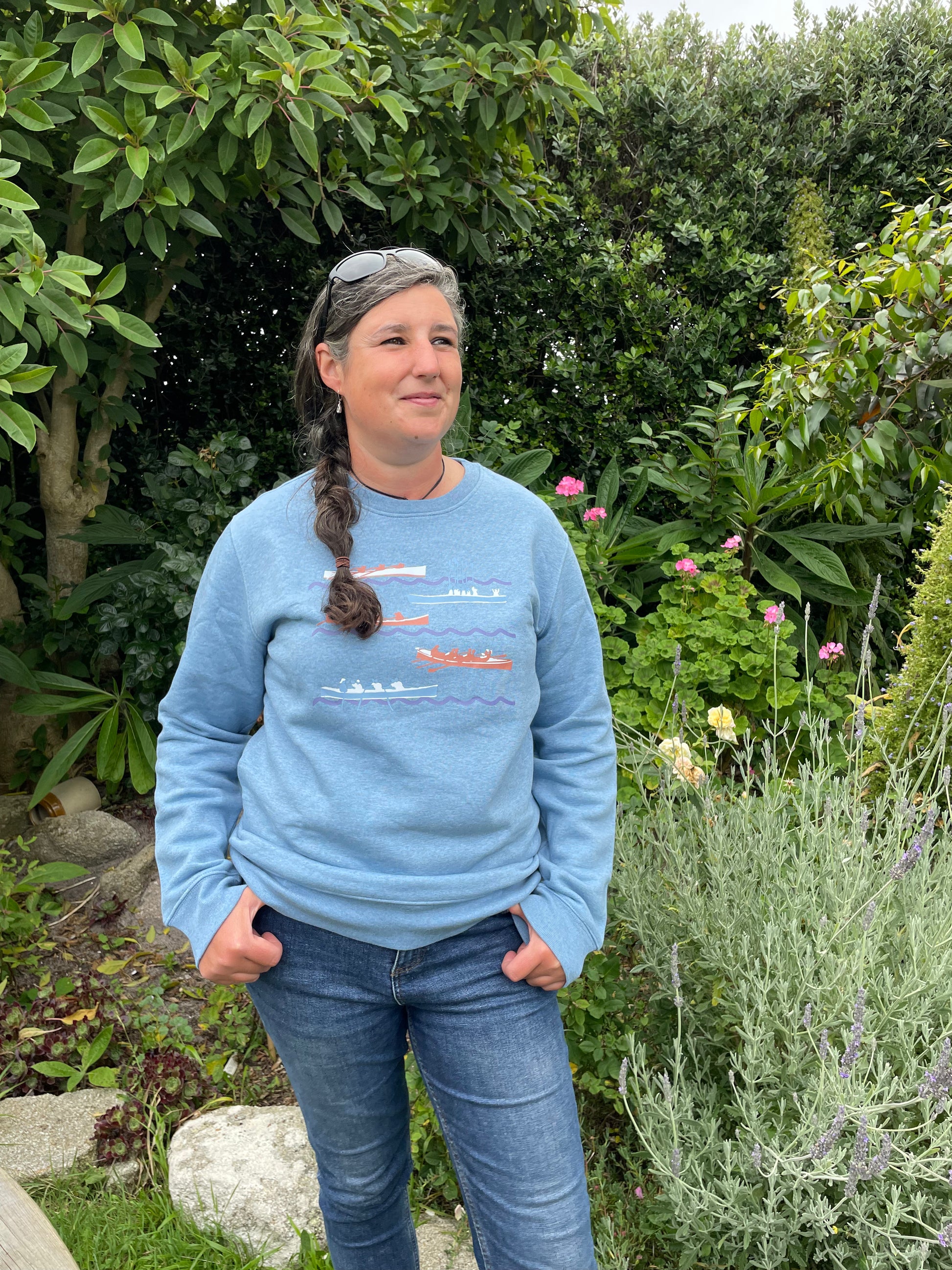We love Holly's design so much, it seemed a shame to just have it on our wrapping paper! So in this Scilly Billy x Holly Woodman collaboration, we've carefully selected some unique colour combinations to print Holly's gigs on these gorgeously soft sustainable sweatshirts.