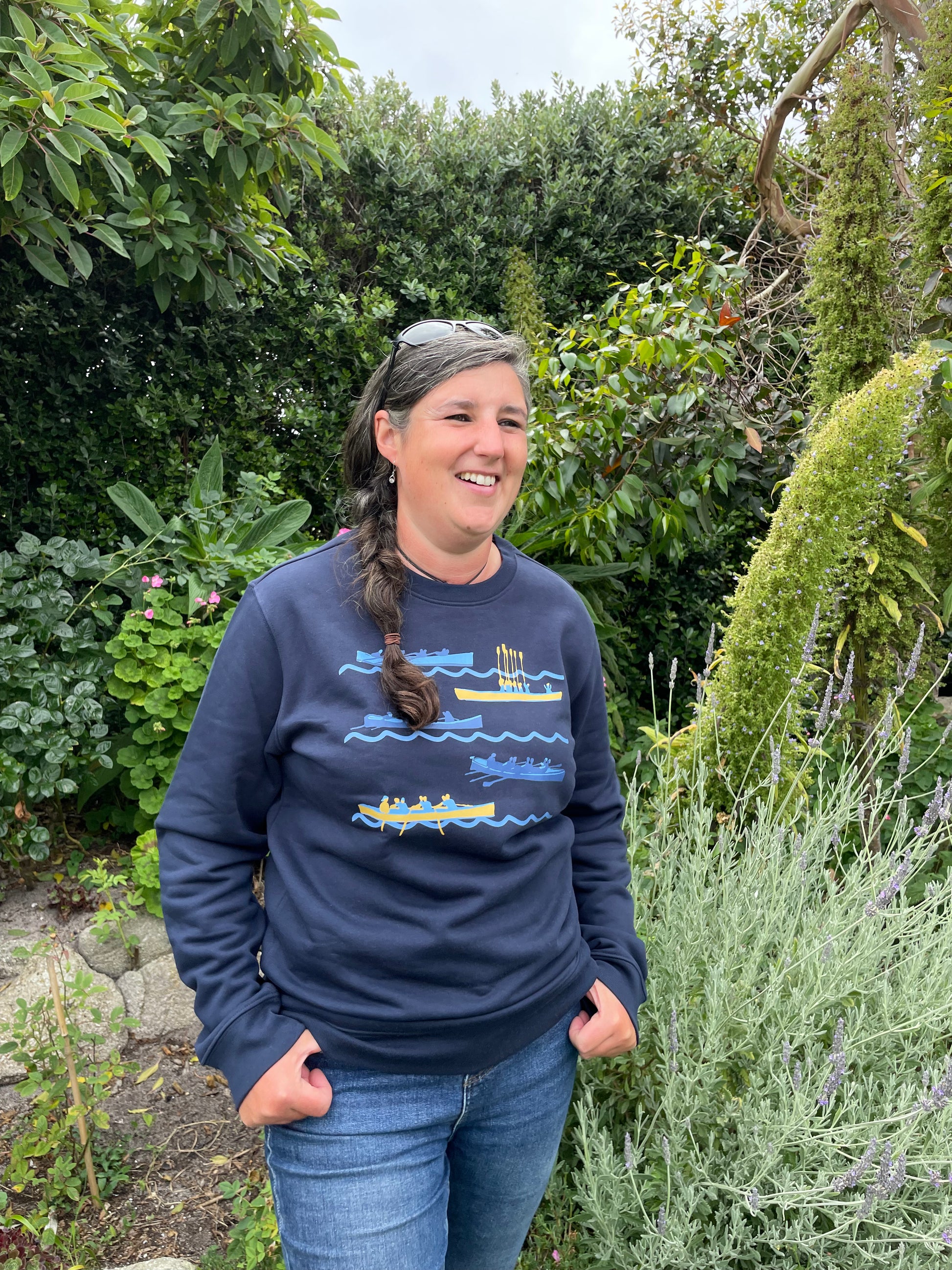 We love Holly's design so much, it seemed a shame to just have it on our wrapping paper! So in this Scilly Billy x Holly Woodman collaboration, we've carefully selected some unique colour combinations to print Holly's gigs on these gorgeously soft sustainable sweatshirts.
