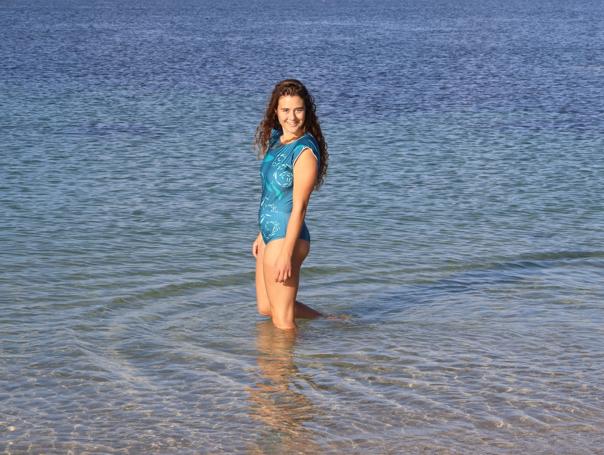 This is a very high quality fabric and garment. Made from Italian ECONYL® regenerated nylon yarn. Hand cut and hand sewn.