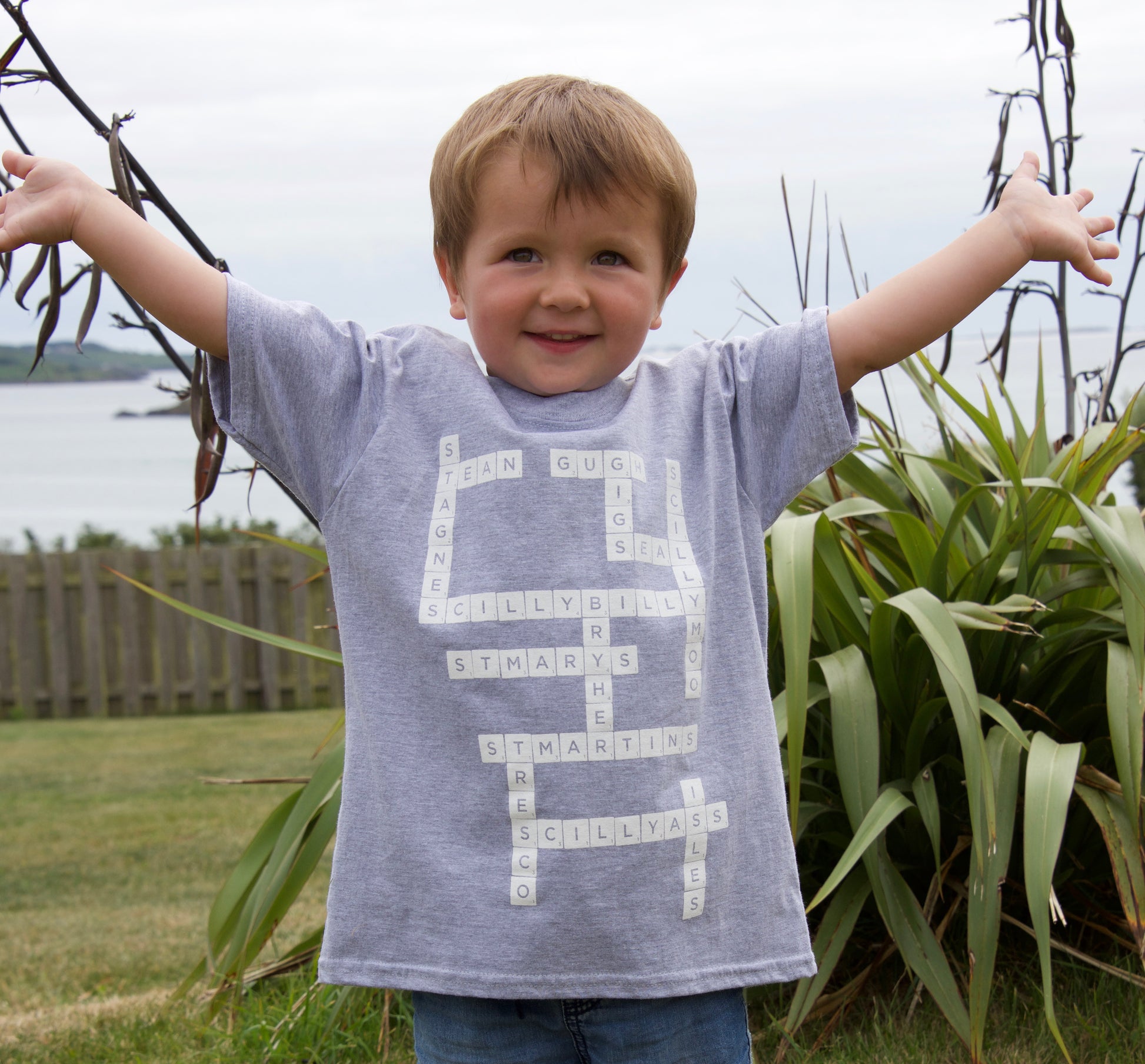 Anyone for Scilly Scrabble? At Scilly Billy we love having fun with word play, so we’ve connected up some of your favourite Scillonian names & words in this unique design.