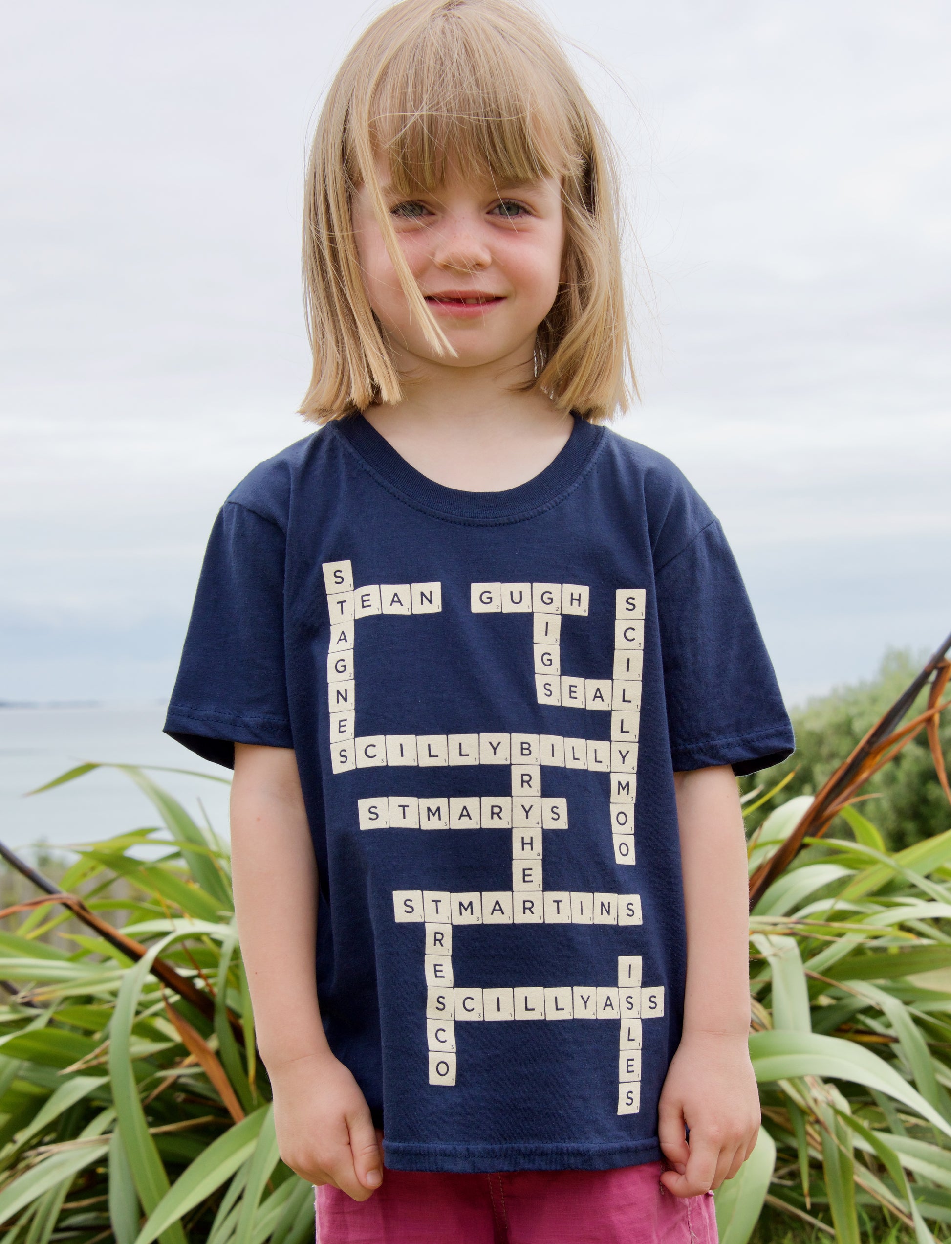 Anyone for Scilly Scrabble? At Scilly Billy we love having fun with word play, so we’ve connected up some of your favourite Scillonian names & words in this unique design.