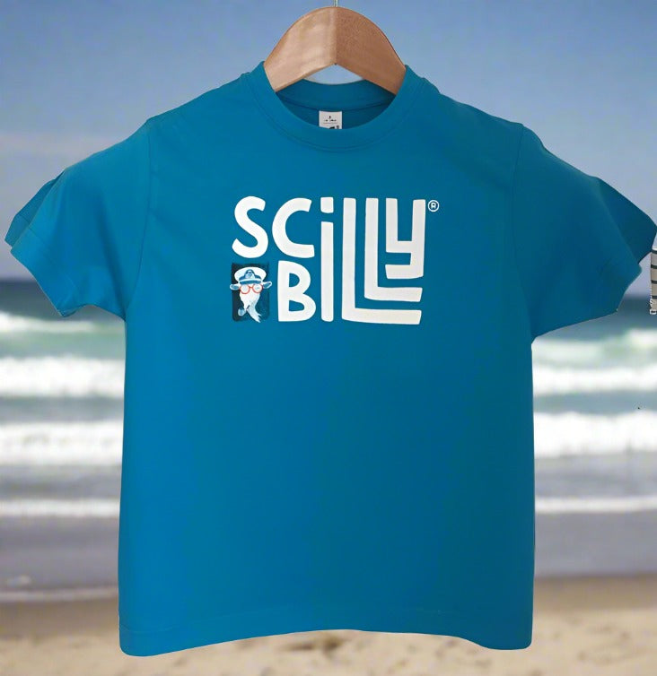To match the adult's classic logo tee, kids can also wear the colour of the Scilly sea. This premium quality kid's T-shirt features the fun, distinctive Scilly Billy logo.