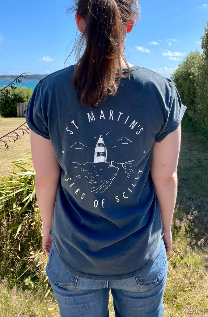 Featuring our island designed St Martin's Daymark hand printed locally in water based ink, these Earth Positive ladies tees are made from 100% combed organic cotton.