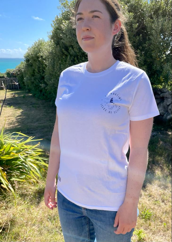 Featuring our island designed St Martin's Daymark hand printed locally in water based ink, these Earth Positive ladies tees are made from 100% combed organic cotton.