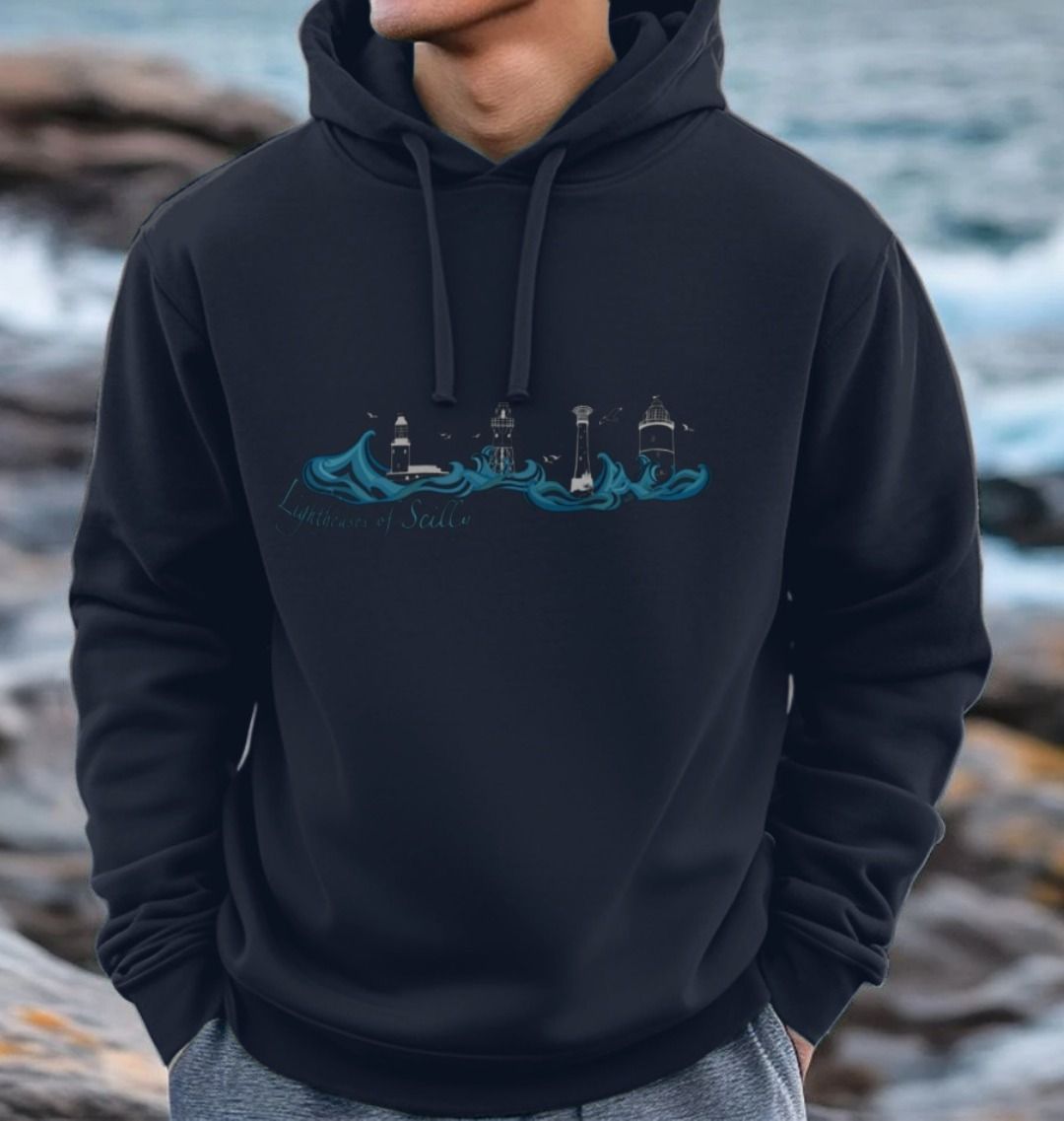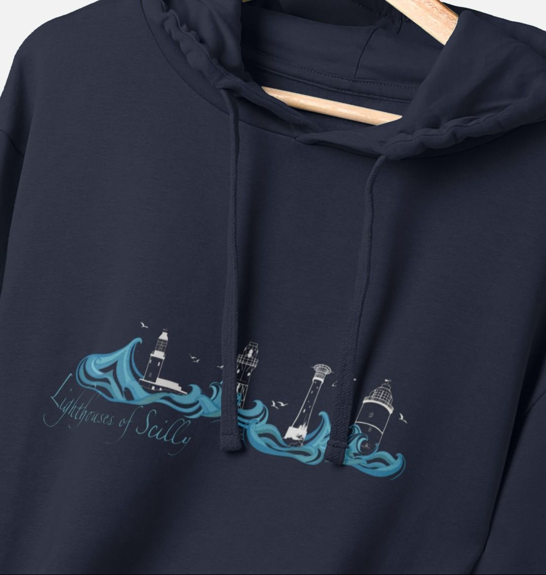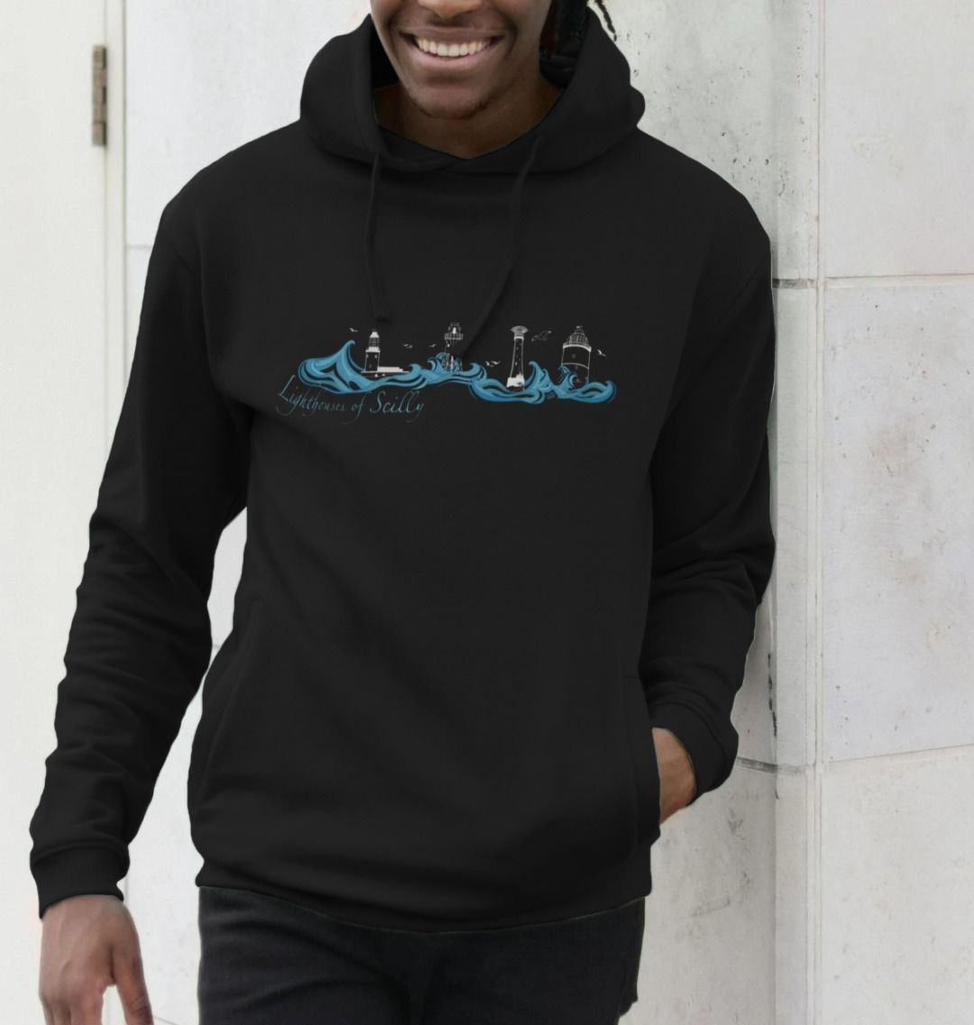 Designed in Scilly, hand drawn on St Martin's. Printed on organic cotton garments made in renewable energy powered mills, using low waste printing tech. Also available without text.