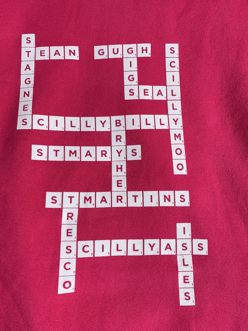 - Featuring the Scilly Billy logo on the front left breast and Scrabble design on the back.