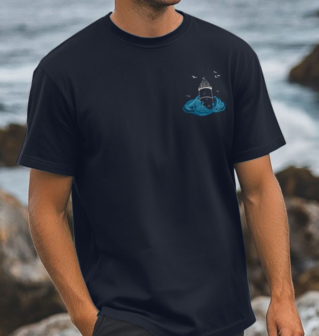Featuring the St Agnes lighthouse as a breast print, this men's tee is designed in Scilly, hand drawn on St Martin's.