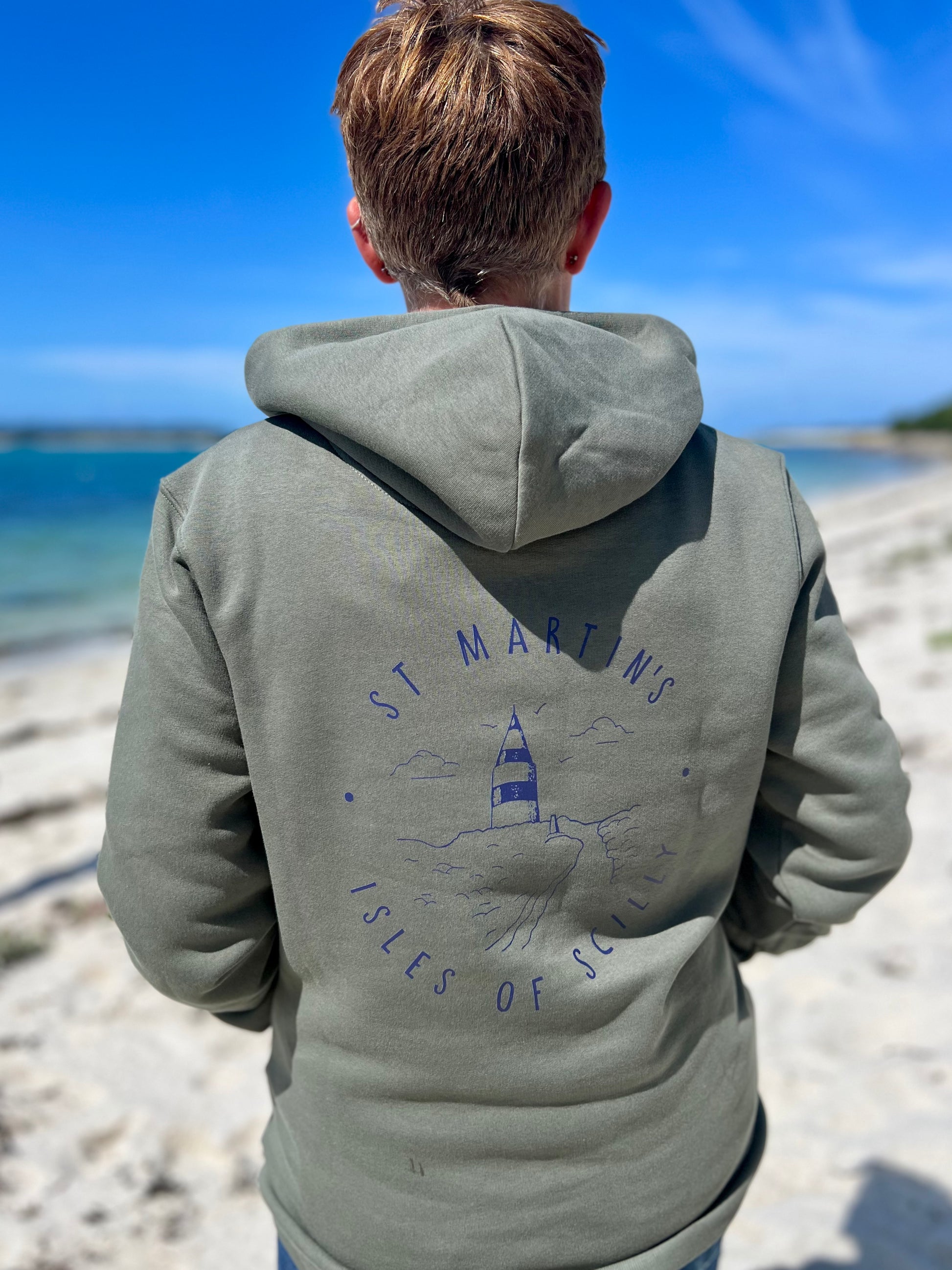 Featuring our island designed St Martin's Daymark and printed in Cornwall using water based ink, these high quality hoodies are made from combed organic cotton and recycled polyester. So not only are they sustainable, but the fabric is incredibly soft and smooth.