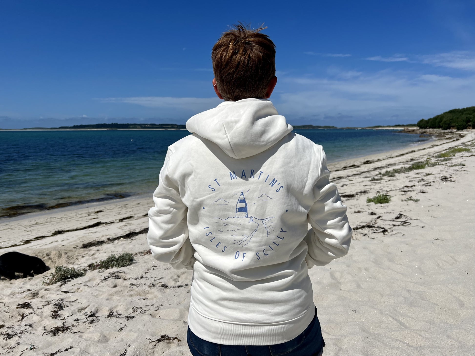 Featuring our island designed St Martin's Daymark and printed in Cornwall using water based ink, these high quality hoodies are made from combed organic cotton and recycled polyester. So not only are they sustainable, but the fabric is incredibly soft and smooth.