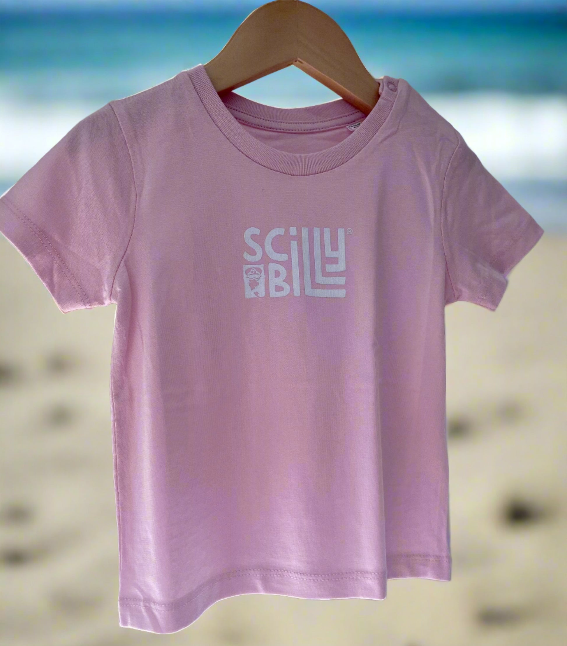 In the beautiful pink colour of Sea Thrift found all over the islands, this organic cotton tee is available to fit little ones aged 0-6 months through to 24-36 months. So no matter how small you are, you can still Get Your Scilly On!