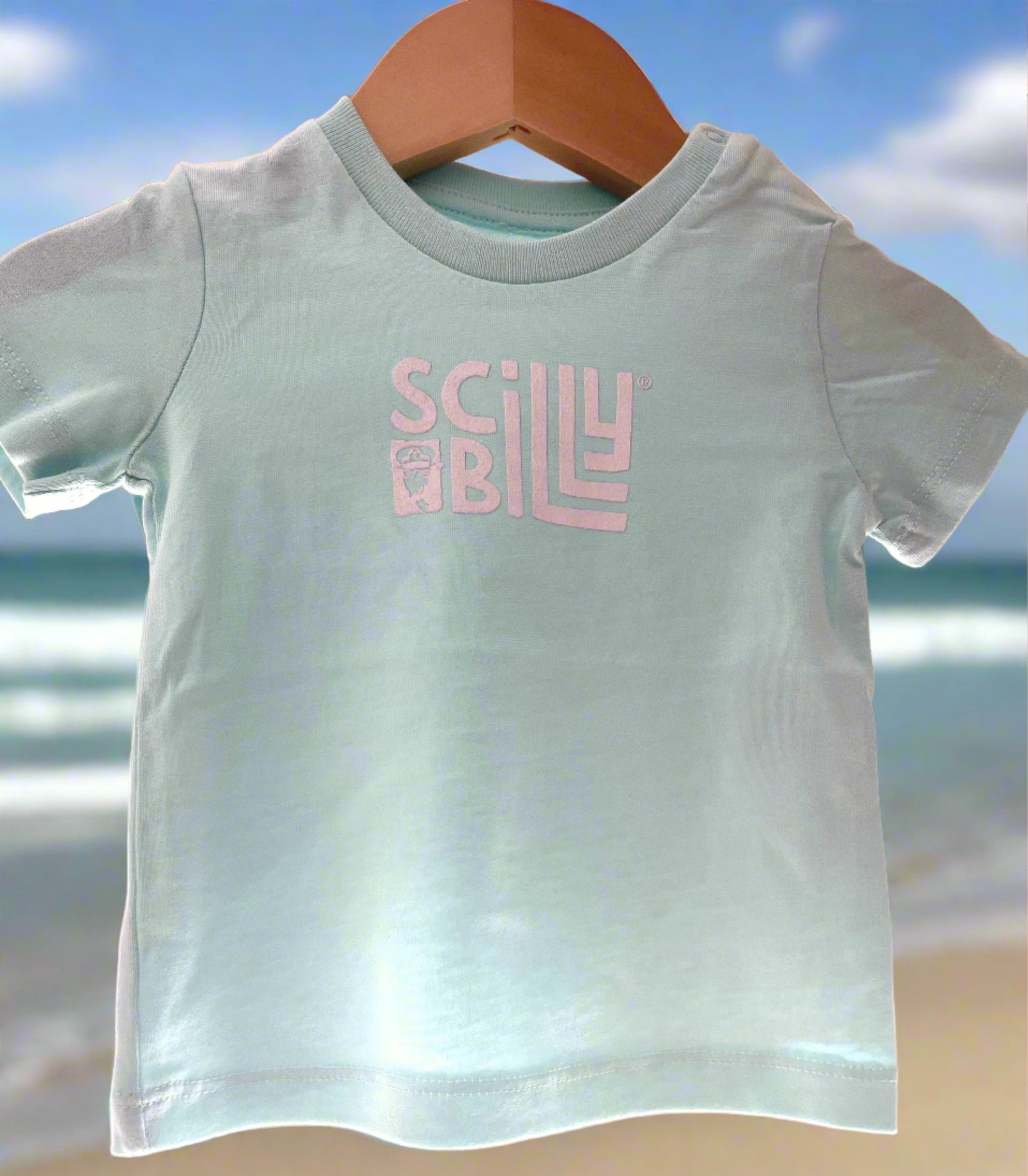 In the beautiful pale lagoon colour of the Scilly sea in summer, this organic cotton tee is available to fit little ones aged 0-6 months through to 24-36 months. So no matter how small you are, you can still Get Your Scilly On!